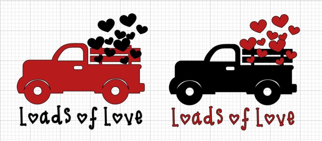 I was torn about whether to do red hearts and lettering or the black glitter hearts and lettering. Read more to see how they looked side by side in my design space before I decided!