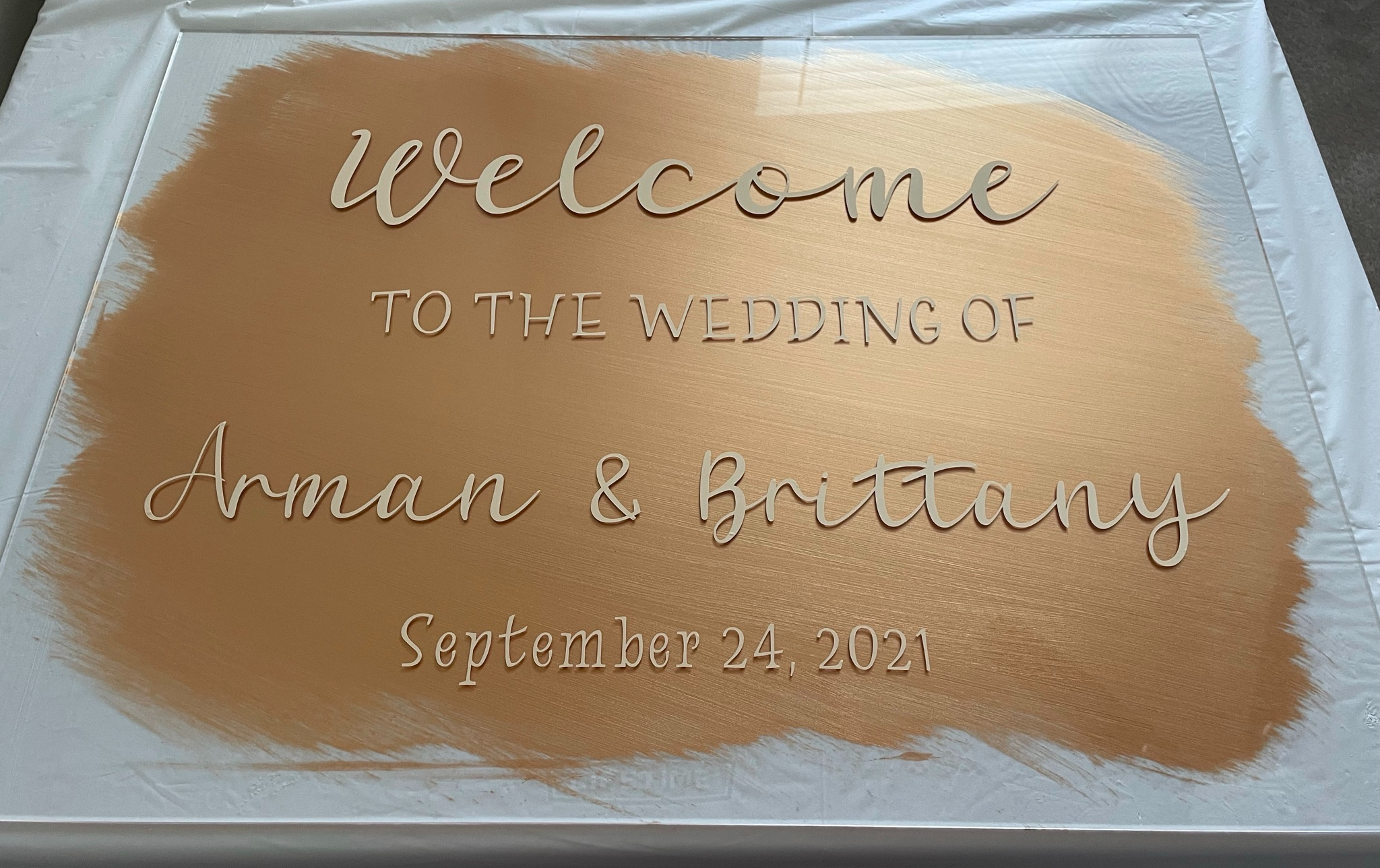 After months of promising some exciting projects for the wedding, I FINALLY get to share! Figuring out the signs for a wedding can be a little daunting since it is a huge piece of what the guests would be guided by, accent the other decorations, and have to hold up as their own decoration as well. Luckily I knew from the start what kind of sign I wanted, a beautiful acrylic sign with painted brush strokes and elegant mixed with fun writing. If you aren’t sure what you want your signs to look like, Pinterest is filled with unique and fun ideas! I loaded up on acrylic sheets (some of which I ordered larger and cut down to the size I want but I’ll get into that later) and now the hardest part, deciding on the paint and font color that would be used everywhere. No pressure right? Thankfully, while wandering through a Michaels craft store the paint popped out at me. I am telling you right now that outdoor venue, deep fall colors, and copper acrylic signs = complete perfection.