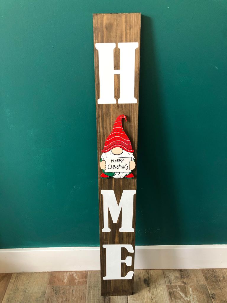 We are gnome for the holidays with this festive wooden cutout christmas gnome! I made a smaller version for my “HOME” sign in December of 2020 and still think it’s one of my favorite projects to date. I decided to make it a little bigger, use my cricut explorer 2 for the sign and I am obsessed with how it turned out! The bright red’s and green’s bring even more holiday cheer to our house and I’m very excited that it is now on out Etsy page here!